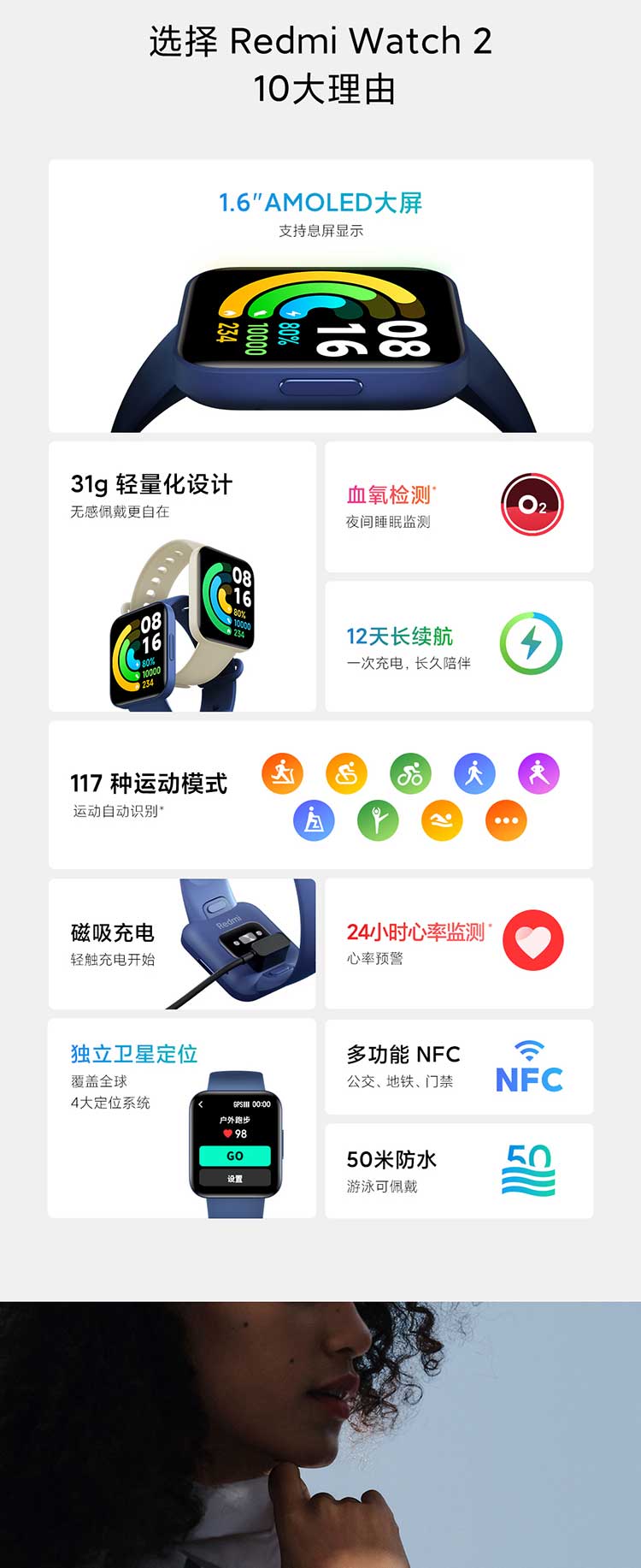 Redmi Watch 2 小米手表 高清大屏 /多种运动模式 /超长续航 运动监测 支持GPS 多功能NFC 红米手表2